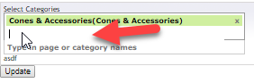 - To add a category, click in the blank space under “Select Categories”, and begin to type the name of the category. A list of categories will appear. Click on the desired category.
